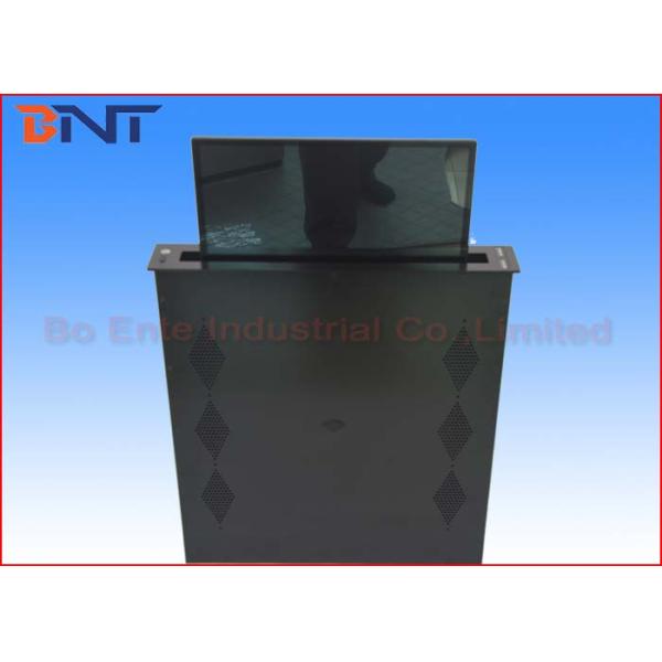 It could lift the monitor vertical retractable automatically by wireless remote, and make the screen motorized horizontal overturn 15~35 degree. It could make the screen straight with 15-35 degree moving back, and lifting down vertical into lifting equipment case. It provides a convenient and advance solution for meeting, particularly for enormous information presentation, like data, image, sound, PPT ect. LCD TV lift could be integrated with 17.3” touch screen, discussion microphone, front camera and all in one smart computer. The lift mechanism support RS232/RS485 communication protocols. It can be distantly controlled by AMX/Crestron central controller or wireless automatically system. It make meeting information presentation more easy, clear and convenient. If integrated with touch screen, user could write something, change something or high line the point by fingers. If integrated with front camera, the speaker on meeting could be follow up and share his face or information on each screen if talking. What’s more, each user could put his own data information by USB input on top surface to share information to all screens without log into main PC if using paperless office software.